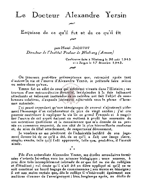 Le docteur Alexandre Yersin-esquisse de ce qu’il fut et de ce qu’il fitĐề mục: Bác sĩ Alexandre Yersin - [...]Title: Doctor Alexandre Yersin-Sketch of who [...]