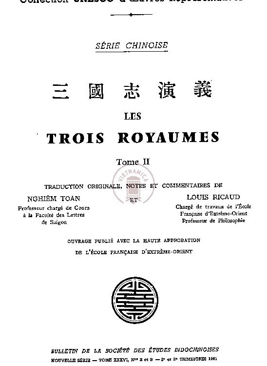 Les trois royaumes (traduction, notes et commentaires de Nghiêm Toản et Louis Ricaud) – tome iiĐề mục: Tam quốc (dịch, chú thích [...]Title: The Three Kingdoms (translation, notes [...]