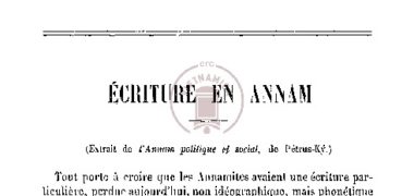 05 Nov 2025 msolgamer@yahoo.fr Autres articles, BSEI 0 Ecriture en annam (extrait de l’annam politique et social, de pétrus-ký)