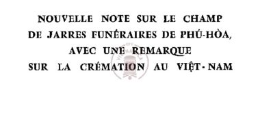 03 Nov 2025 msolgamer@yahoo.fr BSEI, Etudes, Notes et Notices 0 Nouvelle note sur le champ de jarres funéraires de Phú Hòa, avec remarque sur la crémation au Vietnam