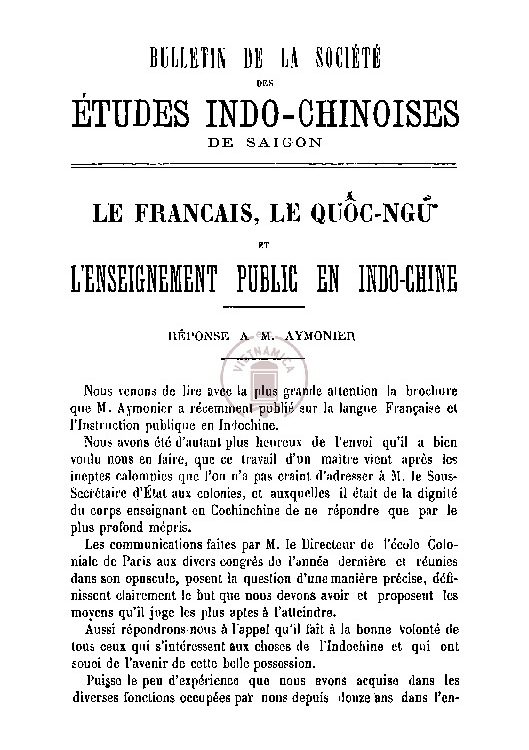 Le français, le qu?c ng? et l’enseignement public en indo-chine, réponse à m. aymonier