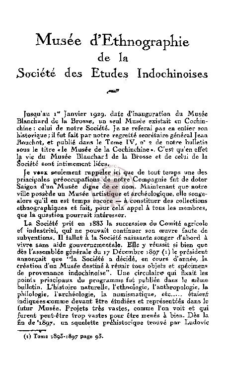 Đề mục : Bảo tàng dân tộc học của Hội Nghiên cứu Đông Dương