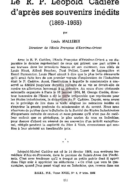 Đề mục : Linh Léopold Cadière dựa theo những kỷ niệm chưa công bố