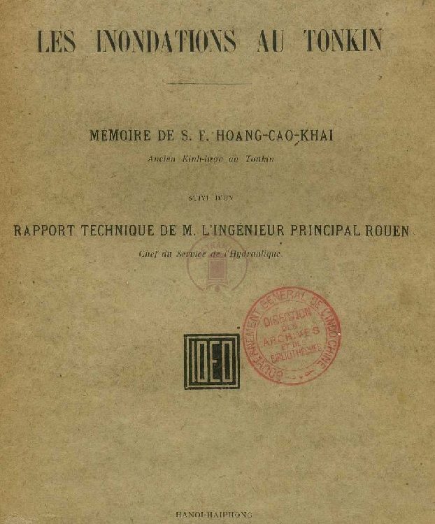 Title : Floods in Tonkin, memoire of S. E. Hoang-Cao-Khai (Former Kinh-lược in Tonkin), followed by a technical report by the Principal Engineer Rouen